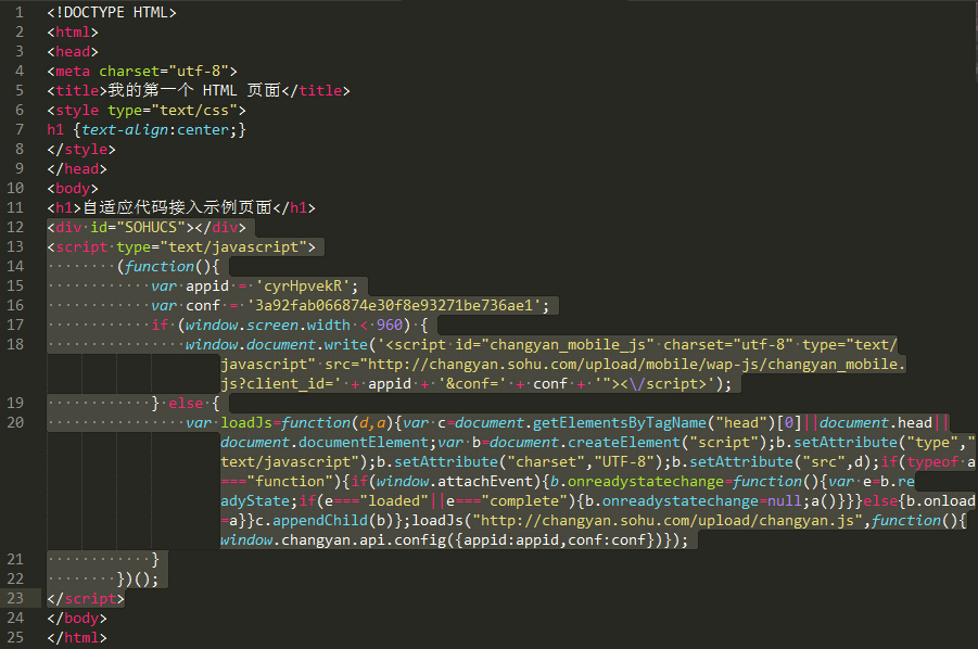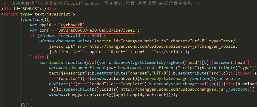 云评论自适应代码如下,请注意替换以下代码中提到的APPID和APPKEY,共有2处。